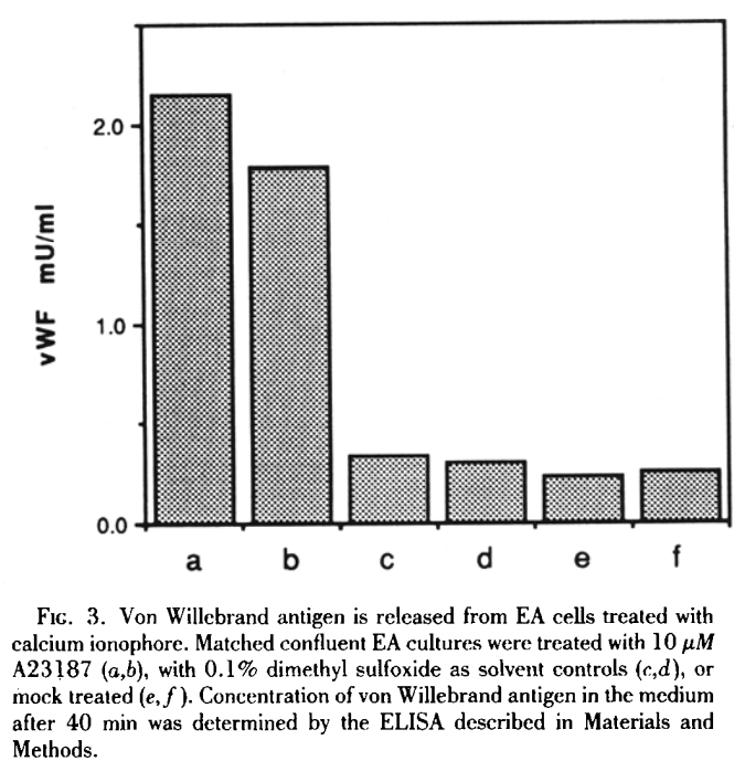 | Expression Profile | von Willebrand factor (vWF), GMP-140, prostacyclin, platelet activating factor, tissue plasminogen activator, plasminogen activator inhibitor type I, thrombomodulin, vitronectin receptor |
