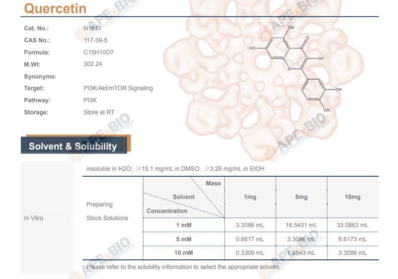 槲皮素 (Quercetin)| CAS#117-39-5 APExBIO貨號N1841