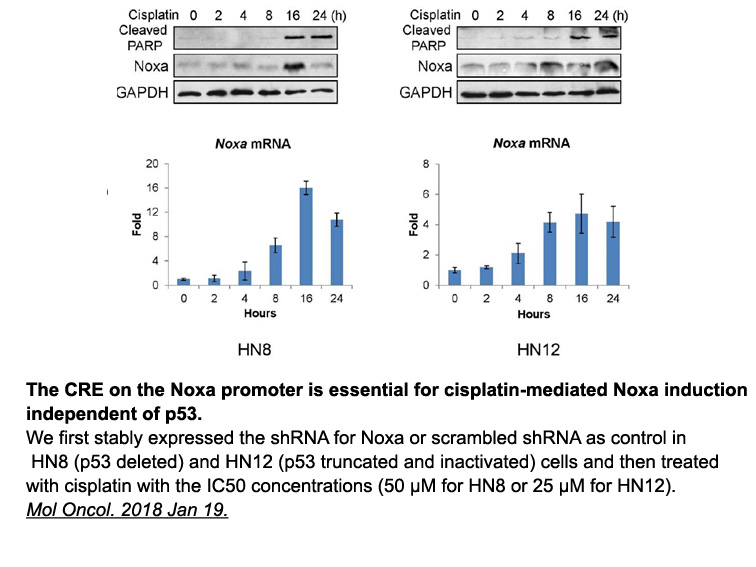 Cisplatin是一種具有一些副作用的抗癌劑(chemotherapeutic agent)。據信它通過幾種機制誘導細胞凋亡(apoptosis)。傳統的機制是Cisplatin進入細胞,與DNA鳥嘌呤鹼基(DNA guanine bases)相互作用,形成鏈間(inter-)或鏈內交聯(intra-strand chain cross-linking),從而阻止DNA的複雜(replication)。這種形成還可以通過激活 p53 來誘導細胞凋亡(apoptosis)。還發現Cisplatin會導致 ROS 產生並增加脂質過氧化(lipid peroxidation),從而導致細胞進入凋亡途徑(apoptotic pathway)。此外,Cisplatin通過半胱天冬酶依賴性途徑(caspase-dependent pathway)誘導細胞凋亡(apoptosis)。在耳蝸細胞(cochlear cells)中,Cisplatin治療導致 caspase-3 和 -9 增加,並引起耳蝸(cochlear damage)損傷副作用 [1]。