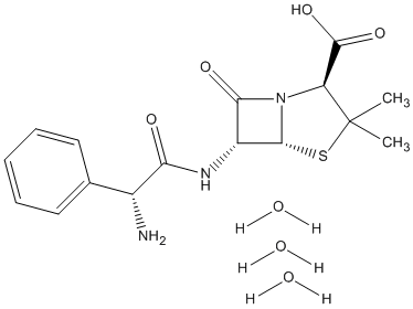 | InChi | InChI=1S/C16H19N3O4S.3H2O/c1-16(2)11(15(22)23)19-13(21)10(14(19)24-16)18-12(20)9(17)8-6-4-3-5-7-8;;;/h3-7,9-11,14H,17H2,1-2H3,(H,18,20)(H,22,23);3*1H2/t9-,10-,11+,14-;;;/m1…/s1 |