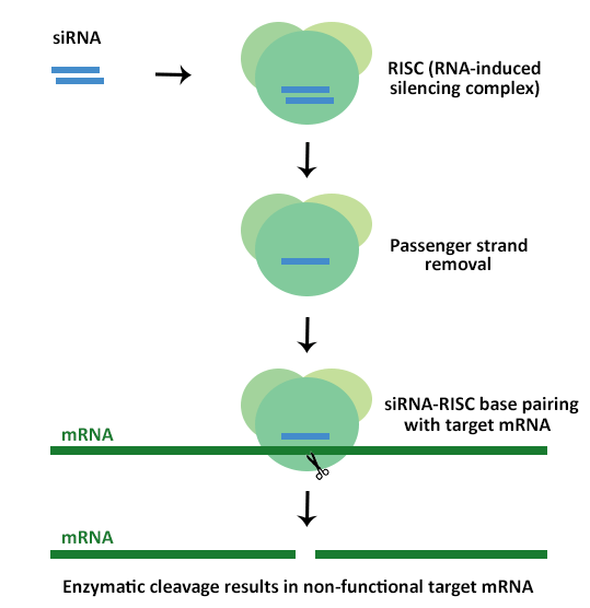 siRNA是用於基因沉默的強大工具,可以通過多種方法遞送至靶細胞或宿主,包括腺病毒,慢病毒或直接轉染DNA質粒或雙鏈RNA(dsRNA)。 siRNA oligo雙鏈體是快速和容易使用的,並且可以在體外和體內用於快速和短暫的基因沉默而不改變宿主基因組。For stable knockdown via lentivirus, please see our lentiviral siRNA library products.abm提供了針對任何人,小鼠或大鼠感興趣的基因的預先設計的3種siRNA寡核苷酸雙鏈體,以及客戶實驗的陽性和陰性對照。雙鏈體可以單獨轉染或合併在一起以實現目標基因的knockdown,最常見的是通過qPCR或western印跡進行評估。提供之siRNA寡核苷酸是化學修飾的(2′-OMe),無需增加額外的電荷,從而提高體外和體內的穩定性和增強的knockdown作用,預pre-annealed,及 lyophilized powder凍乾粉末運輸,以便更長時間和更穩定的儲存。
