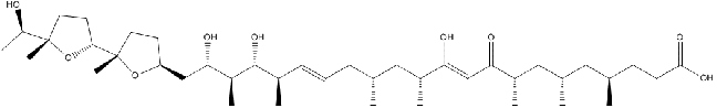 | SMILES | CC(CCC(=O)O)CC(C)CC(C)C(=O)C=C(C(C)CC(C)CC=CC(C)C(C(C)C(CC1CCC(O1)(C)C2CCC(O2)(C)C(C)O)O)O)O |