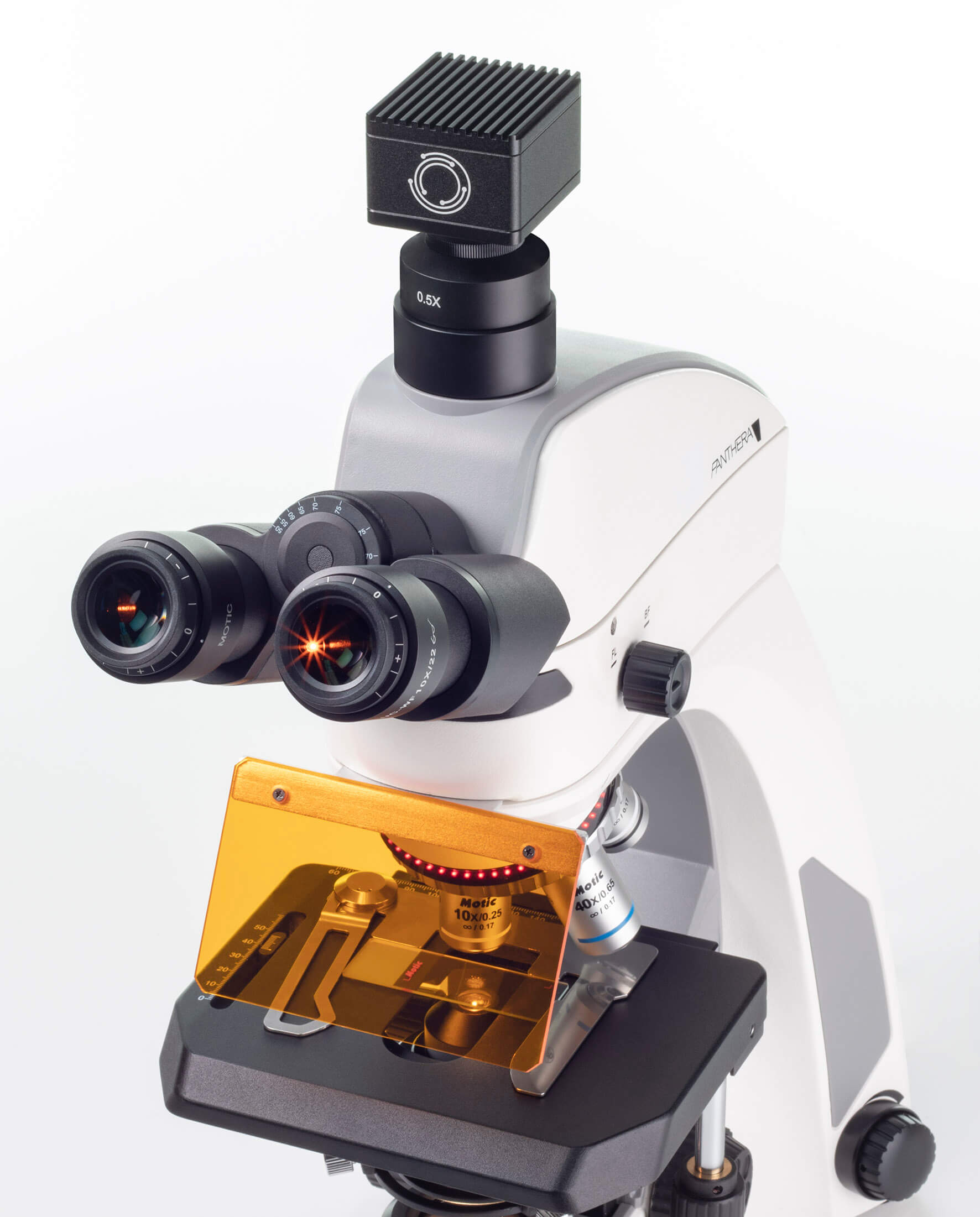 - 採用Sony sCMOS晶片,結合了傳統CCD高靈敏度、高解析度、低輸出雜訊以及CMOS高速傳輸和低耗電等優點,也克服了CMOS雜訊和暗電流大的缺點,即使微弱的訊號也能捕捉,非常適合拍攝螢光樣本。