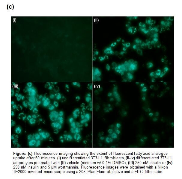 | Applications | • Characterization of fatty acid uptake kinetics in live cells. • Screening and characterization of drugs and test compounds for modulation of fatty acid uptake. |