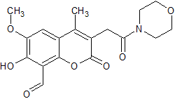 | InChi | InChI=1S/C18H19NO7/c1-10-11-7-14(24-2)16(22)13(9-20)17(11)26-18(23)12(10)8-15(21)19-3-5-25-6-4-19/h7,9,22H,3-6,8H2,1-2H3 |