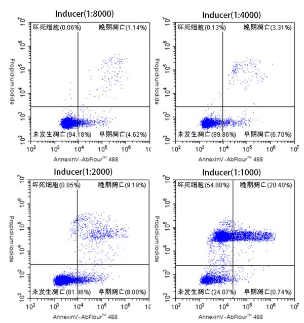 Fig.1 Annexin V-AbFluor™ 488 Apoptosis Detection Kit was used to detect the apoptosis effect of HeLa cells after apoptosis induction
