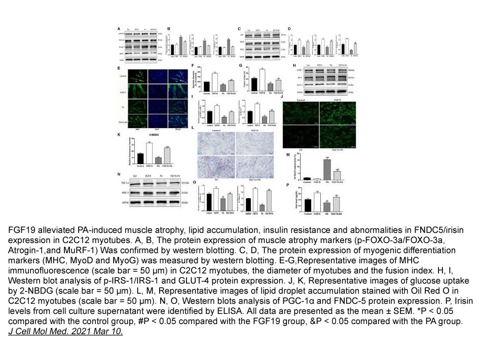 - 4. Ai Guo, Kai Li, et al. “FGF19 protects skeletal muscle against obesity-induced muscle atrophy, metabolic derangement and abnormal irisin levels via the AMPK/SIRT-1/PGC-α pathway.” J Cell Mol Med. 2021 Apr;25(7):3585-3600. PMID: 33751819