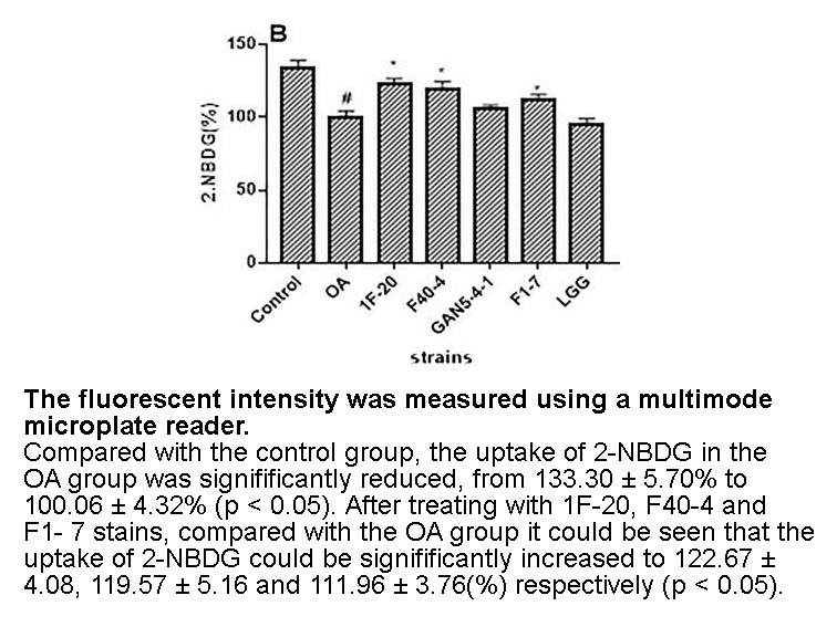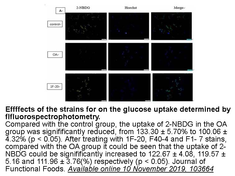 | Applications | In HepG2 human hepatocarcinoma cells and L6 rat skeletal muscle cells, 2-NBDG concentrations higher than 0.25 mM might show a high degree of self-quenching. 2-NBDG could be used as a fluorescent indicator for direct glucose uptake measurement. In the MCF-7 breast cancer cells, 2-NBDG uptake displayed rapid uptake for the first one to five minutes, then slowed, reaching an apparent maximum uptake near 20–30 minutes. |