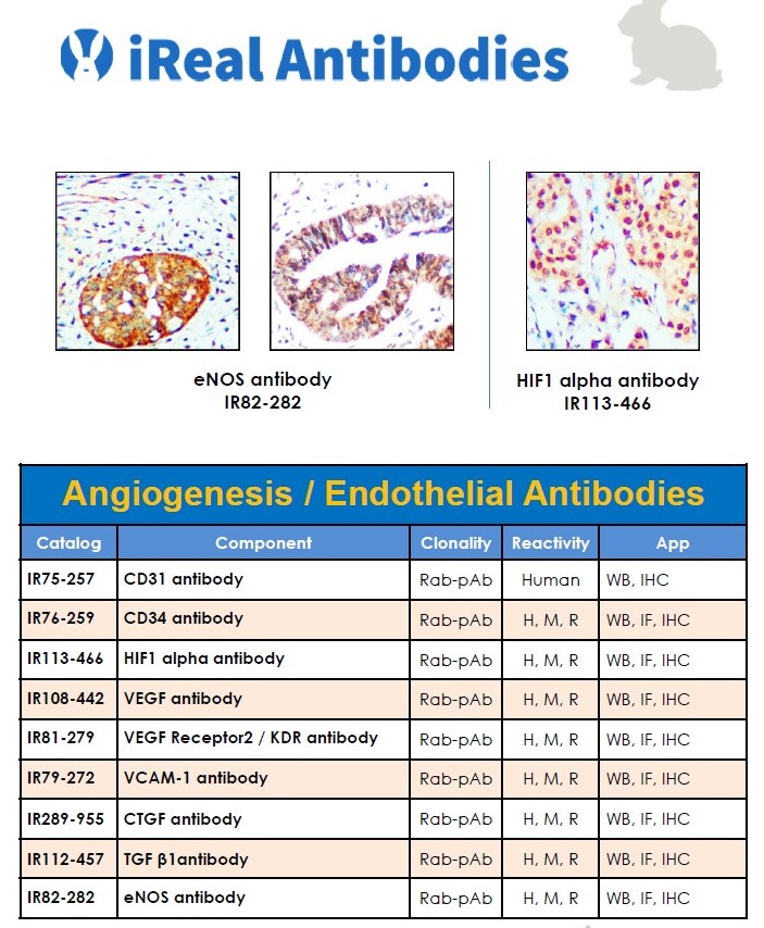 IHC/WB/IF/IP研究工具-Angiogenesis / Endothelial Antibodies–IReal Biotechnology