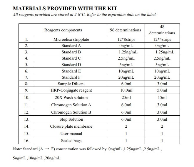 | Storage | The unopened kit should be stored at 2 – 8°C. After opening, please store refer to the manual. |