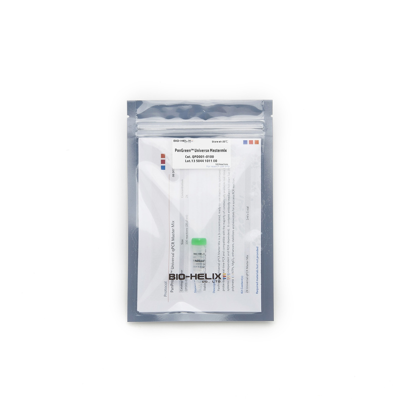 PanProbesTM 通用 qPCR 預混液(Universal qPCR Master Mix)是一種 2 倍濃縮( 2x concentrated)的即用型預混液(ready-to-use master mix),針對基於probe- PCR (probe-based real-time PCR )進行了優化,並與real-time PCR systems(不依賴 ROX 和依賴 ROX)兼容。它包含抗體介導的熱啟動 Taq DNA聚合酶( antibody-mediated hot-start Taq DNA polymerase)、dNTP、MgCl2、增強劑(enhancers)、穩定劑(stabilizers )和成功進行 PCR 反應的必需品。