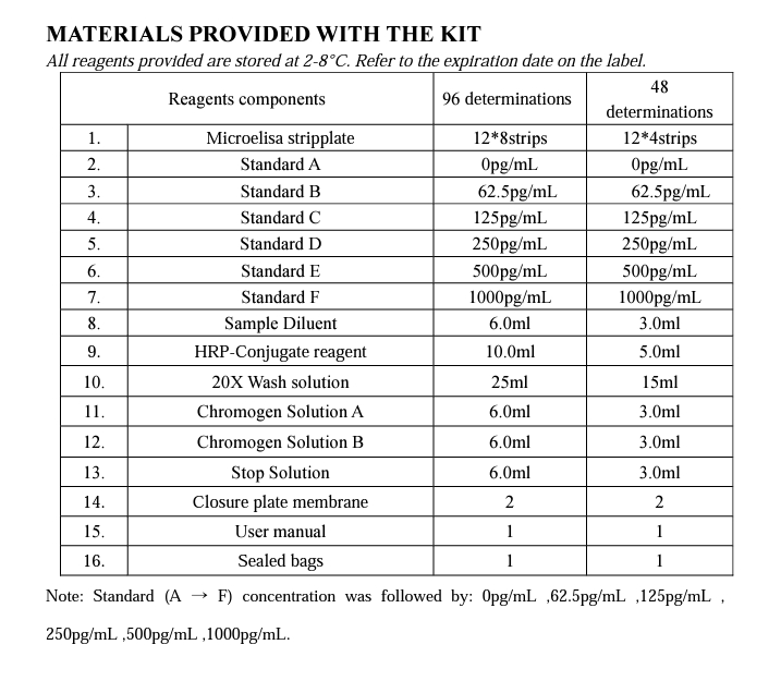 偵測範圍:20pg/mL -1000pg/mL, 最低靈敏度10pg/mL