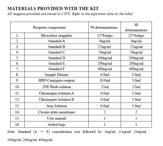 | Detection range | 10ng/ml -400ng/ml |