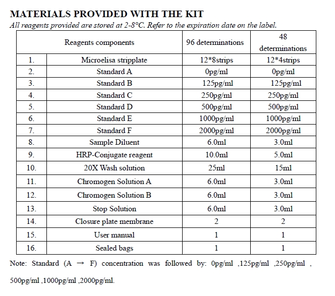 偵測範圍: 20pg/ml -2000pg/ml , 最低靈敏度10.0pg/ml