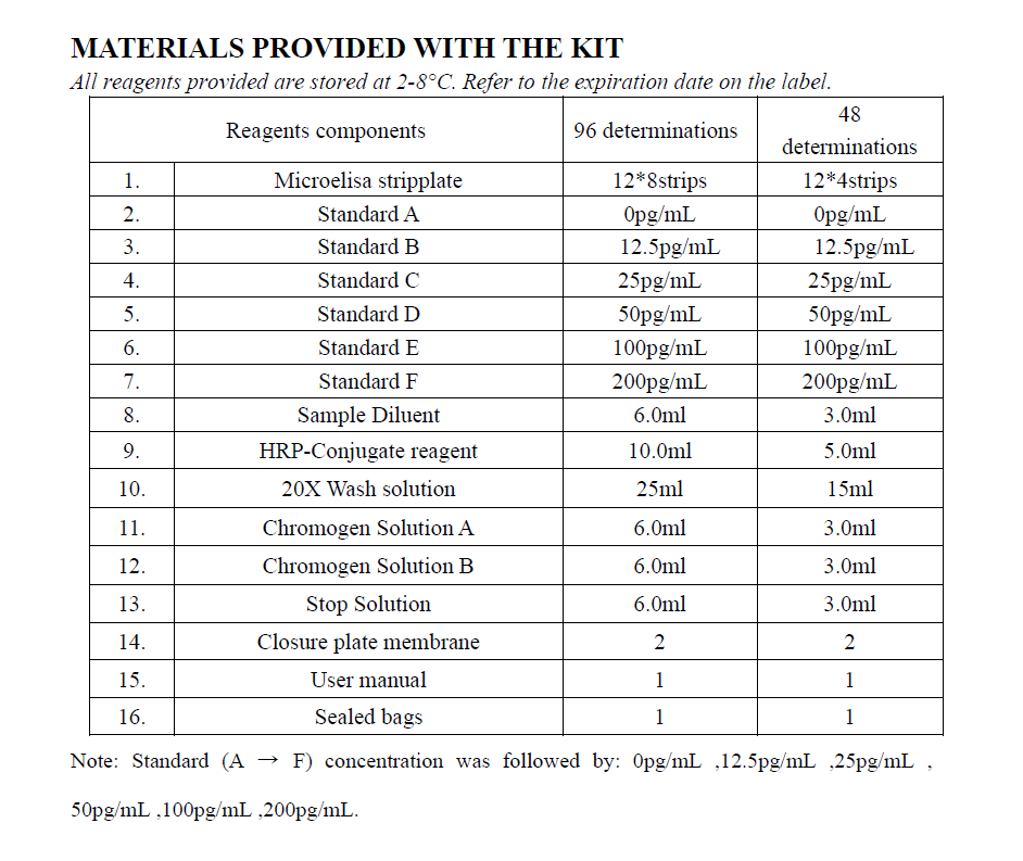 偵測範圍: 1pg/mL -200pg/mL , 最低靈敏度1.0pg/mL