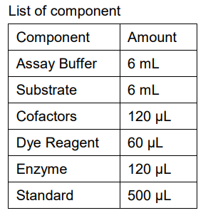 - Colorimetric Assay: 0.1 to 10 U/L, Fluorimetric Assay: 0.01 to 2 U/L