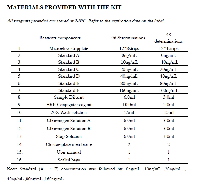| Detection range | 5ng/mL -160ng/mL |