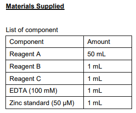 - Zinc Assay Kit is a quantitative colorimetric zinc determination at 425 nm.