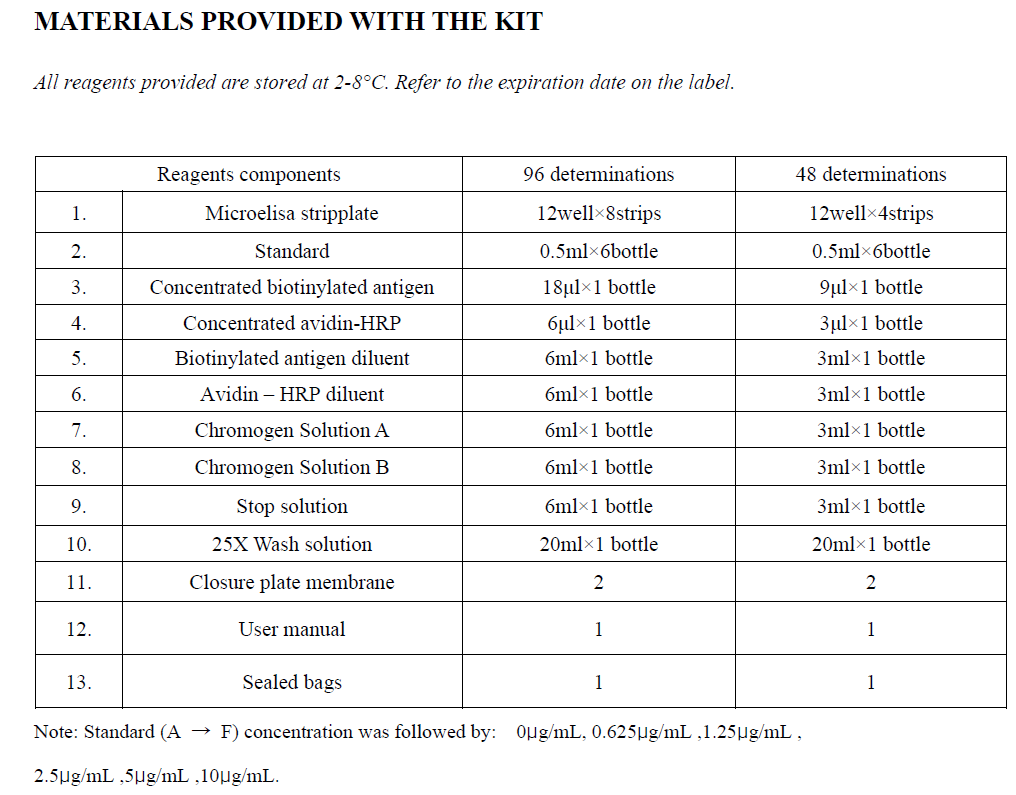 Storage The unopened kit should be stored at 2 – 8°C. After opening, please store refer to the manual.