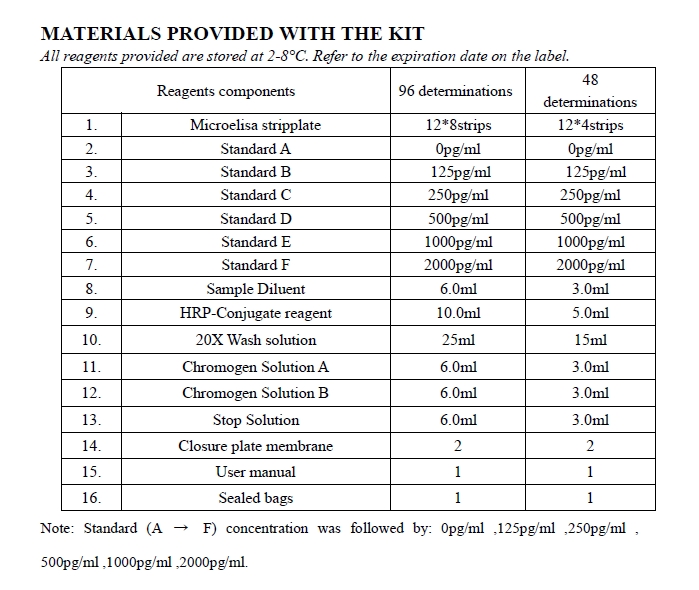 偵測範圍:31.2pg/ml -2000pg/ml , 最低靈敏度7.8pg/ml