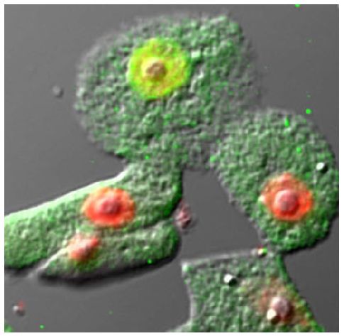 - Tekle YI, Anderson OR, Lecky AF. Evidence of parasexual activity in “asexual amoebae” Cochliopodium spp. (Amoebozoa): extensive cellular and nuclear fusion. Protist. 2014;165:676-87. (ICC, AF488, AF594, CellMask™ Orange)