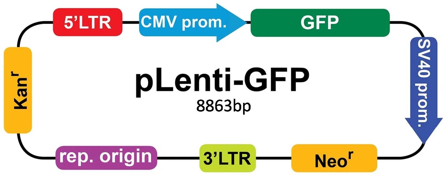 | GFP Control Lentivirus | Neomycin | 10 ml | 1×106IU/ml | LV006 |