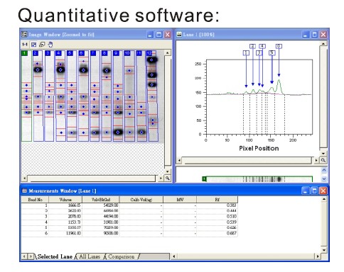 - 針對電泳膠影像進行定量分析,核酸電泳膠或蛋白質電泳膠均適用。