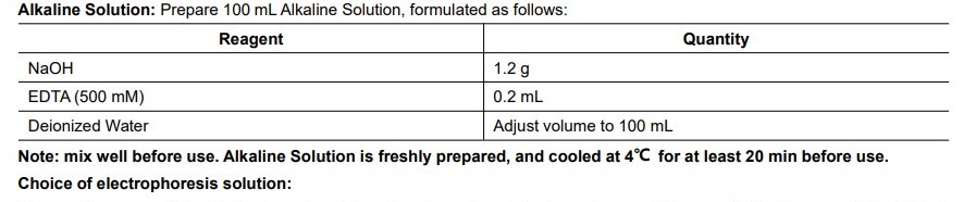 Alkaline Electrophoresis Solution (300 mM NaOH, 1 mM EDTA, pH>13)溶液配製