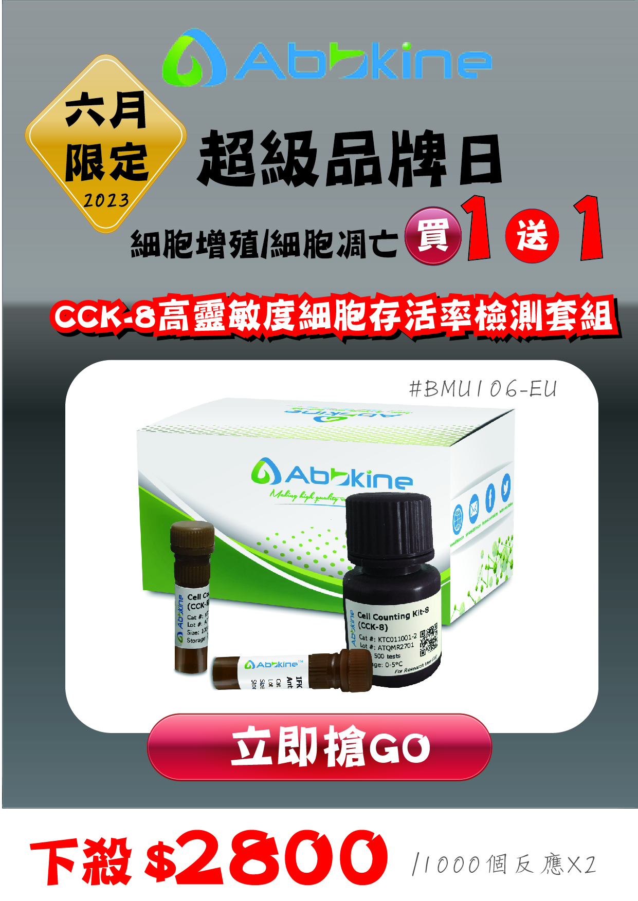 促銷活動: CCK8高靈敏度細胞存活率檢測Cell Counting Kit-8 (CCK-8) (貨號BMU106-EN)