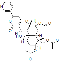 | Alternate Name | 3S,4R,4aR,6S,6aS,12R,12aS,12bS)-4-(acetoxymethyl)-12-hydroxy-4,6a,12b-trimethyl-11-oxo-9-(pyridin-3-yl)-1,3,4,4a,5,6,6a,12,12a,12b-decahydro-2H,11H-benzo[f]pyrano[4,3-b]chromene-3,6-diyl diacetate |