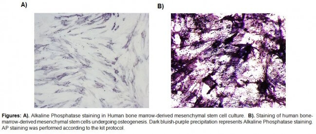 鹼性磷酸酶 (Alkaline Phosphatase ,AP) 染色試劑盒提供了一種快速簡便的方法來對多能幹細胞中的鹼性磷酸酶(Alkaline Phosphatase)進行染色。 它基於鹼性磷酸酶(Alkaline Phosphatase)水解底物 5-溴-4-氯-3-吲哚基磷酸酯 (5-Bromo-4-chloro-3-indolyl phosphate , BCIP) 上的磷酸基團以形成藍色中間體的能力。 (Nitro Blue Tetrazolium , NBT) 然後將中間體氧化形成不溶的深藍色二聚體。由於幹細胞/多能幹細胞的 AP 活性增加,因此 AP 染色試劑盒可用於鑑定和篩選這些細胞中的鹼性磷酸酶活性(Alkaline Phosphatase activity)。 該染色方法簡單、快速、經濟、可靠。 整個過程可以在同一個微量滴定板上進行,不需要任何額外的步驟,如固定或收穫細胞。 該測定還可用作測試細胞多能性和監測多能/幹細胞的成骨分化的初始步驟。