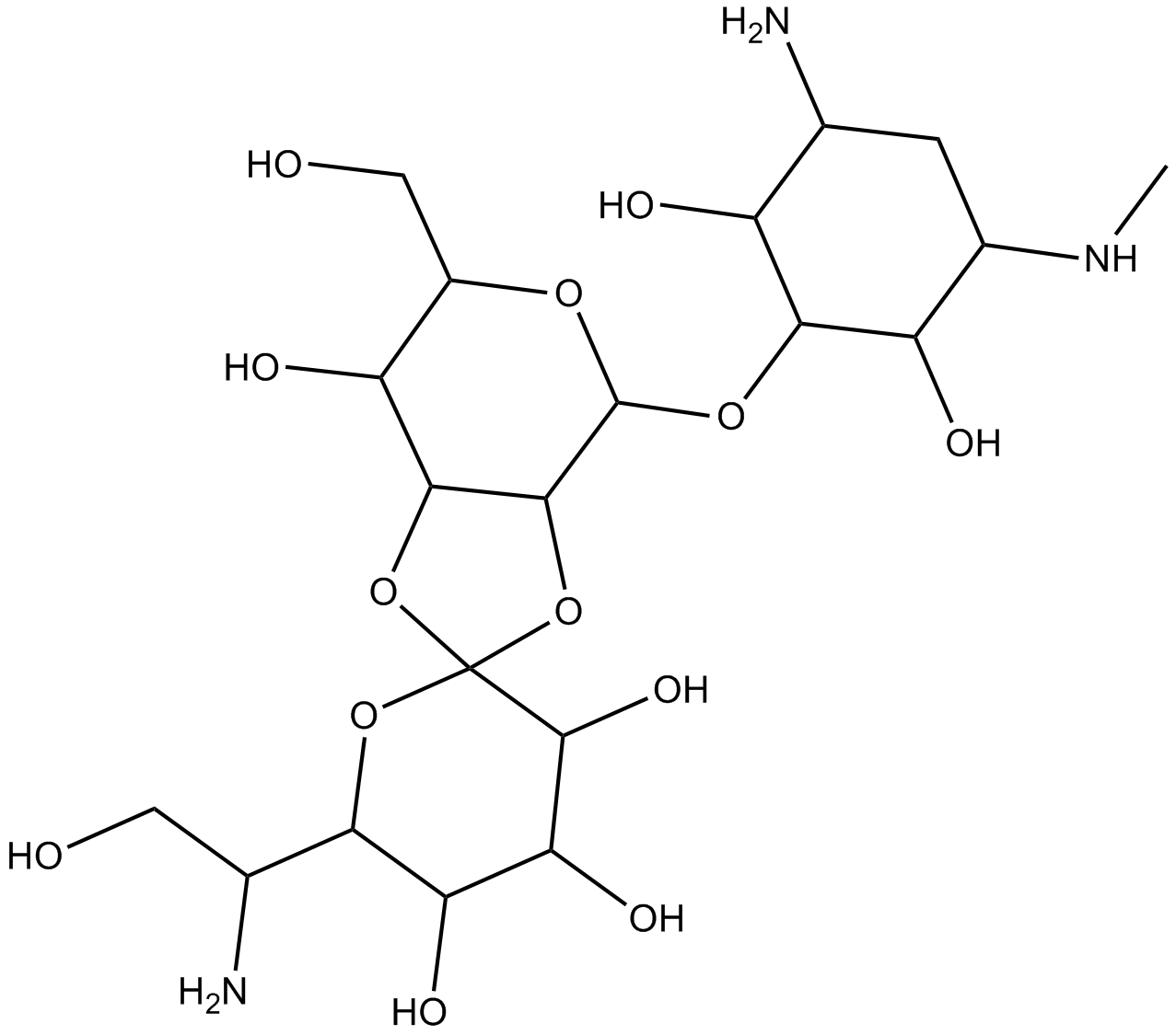 | Chemical Name | (3’R,3aS,4S,4’R,5’R,6R,6’R,7S,7aS)-4-[(1R,2S,3R,5S,6R)-3-amino-2,6-dihydroxy-5-(methylamino)cyclohexyl]oxy-6′-[(1S)-1-amino-2-hydroxyethyl]-6-(hydroxymethyl)spiro[4,6,7,7a-tetrahydro-3aH-[1,3]dioxolo[4,5-c]pyran-2,2′-oxane]-3′,4′,5′,7-tetrol |