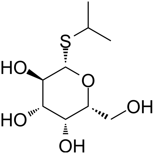 IPTG (Isopropyl β-D-thiogalactoside)是異乳糖(allolactose)的分子模擬物,異乳糖(allolactose)是一種乳糖代謝物(lactose metabolite),可觸發 lac 操縱子的轉錄,因此可用於誘導基因在 lac 操縱子控制下的蛋白質表達。變構 lac 抑制蛋白抑制。IPTG (Isopropyl β-D-thiogalactoside)經常被用來作為乳糖操縱子的誘導物。誘導 β-半乳糖苷酶 (LacZ) 表達。與 X-gal 結合使用,用於重組細菌的藍/白篩選。