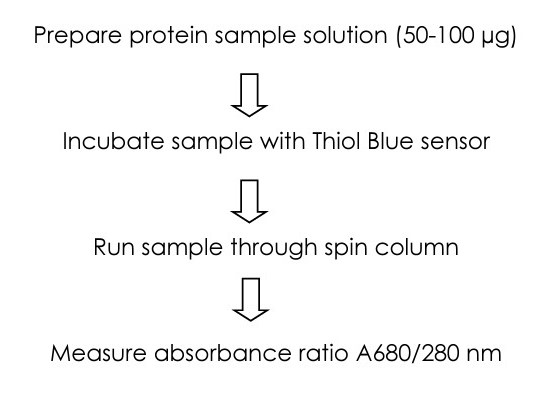 總蛋白硫醇檢測試劑盒(比色法)(ab219272) 提供了一種準確的方法來定量蛋白質中的游離硫醇基團( free thiol groups )。該測定使用我們專有的硫醇傳感器 (Thiol Blue),它在 OD 680 nm 處具有最大吸光度。硫醇藍 (Thiol Blue)與含有游離硫醇基團的蛋白質樣品發生反應。生成的硫醇加合物通過單個離心柱以去除過量的硫醇藍傳感器,並測量純化產物的吸收光譜。硫醇(thiol)的量與蛋白質的比率是根據 680 nm 和 280 nm 的吸光度比率計算的。該測定可以在傳統的比色杯、分光光度計或帶有紫外線透明板的方便的 96 孔吸光度板讀取器中進行。蛋白質硫醇(thiol)對蛋白質結構(protein structure)、蛋白質功能( protein function)和生物系統氧化還原環境非常重要已被廣泛接受。例如,白蛋白(albumin)是血漿中最豐富的蛋白質,白蛋白中存在的游離硫醇( free thiol )被認為是體內主要的血漿抗氧化劑。白蛋白中硫醇狀態的變化與許多疾病和病症有關,例如腎臟疾病(kidney disease )和帕金森病( Parkinson’s disease.)。儘管有一些試劑或檢測試劑盒可用於定量生物系統中的總硫醇含量,但關鍵的挑戰是擁有一種快速準確的方法來量化特定蛋白質中游離硫醇基團的量。