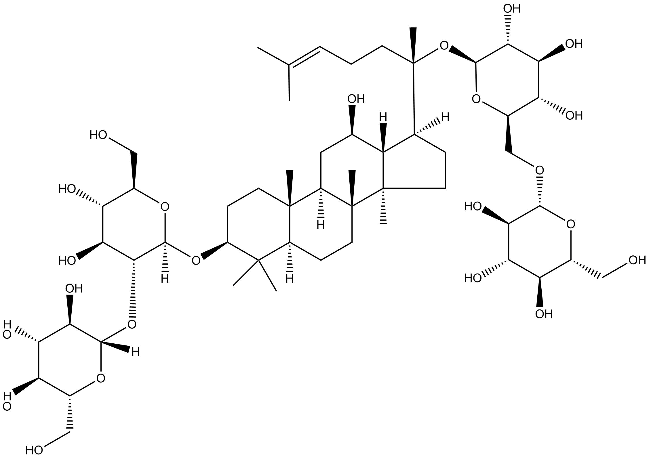 | Chemical Name | (2S,3R,4S,5S,6R)-2-(((2R,3R,4S,5S,6R)-4,5-dihydroxy-2-(((3S,5R,8R,9R,10R,12R,13R,14R,17S)-12-hydroxy-4,4,8,10,14-pentamethyl-17-((S)-6-methyl-2-(((2S,3R,4S,5S,6R)-3,4,5-trihydroxy-6-((((2R,3R,4S,5S,6R)-3,4,5-trihydroxy-6-(hydroxymethyl)tetrahydro-2H-pyran |