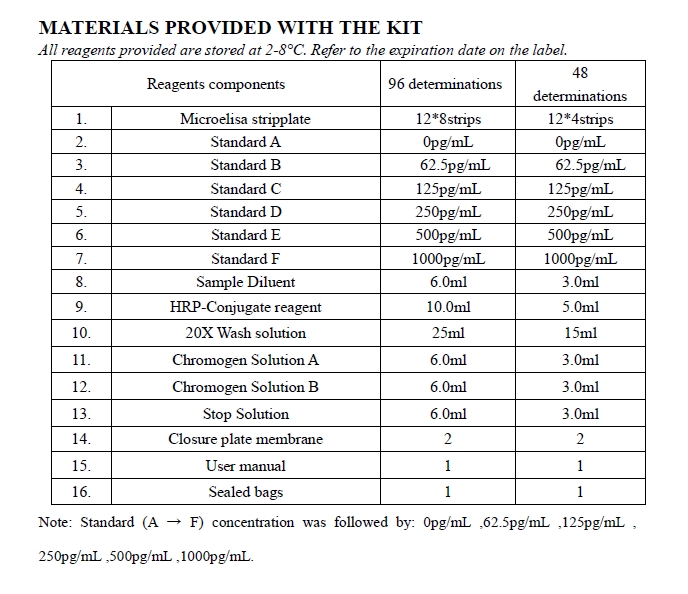 偵測範圍:15.6pg/mL -1000pg/mL , 最低靈敏度9.375pg/mL