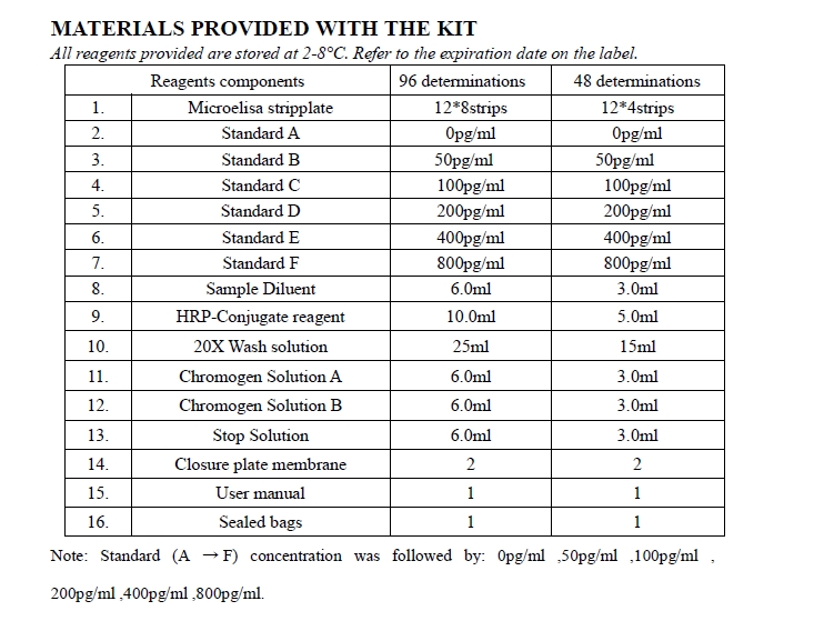 偵測範圍:20pg/ml -800pg/ml , 最低靈敏度10.0pg/ml