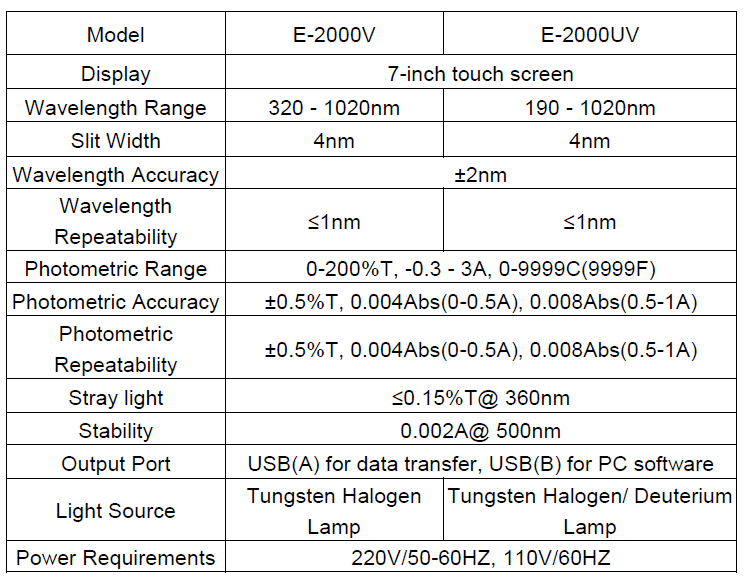 | Photometric Accuracy | ±0.5%T, 0.004Abs(0-0.5A), 0.008Abs(0.5-1A) | |