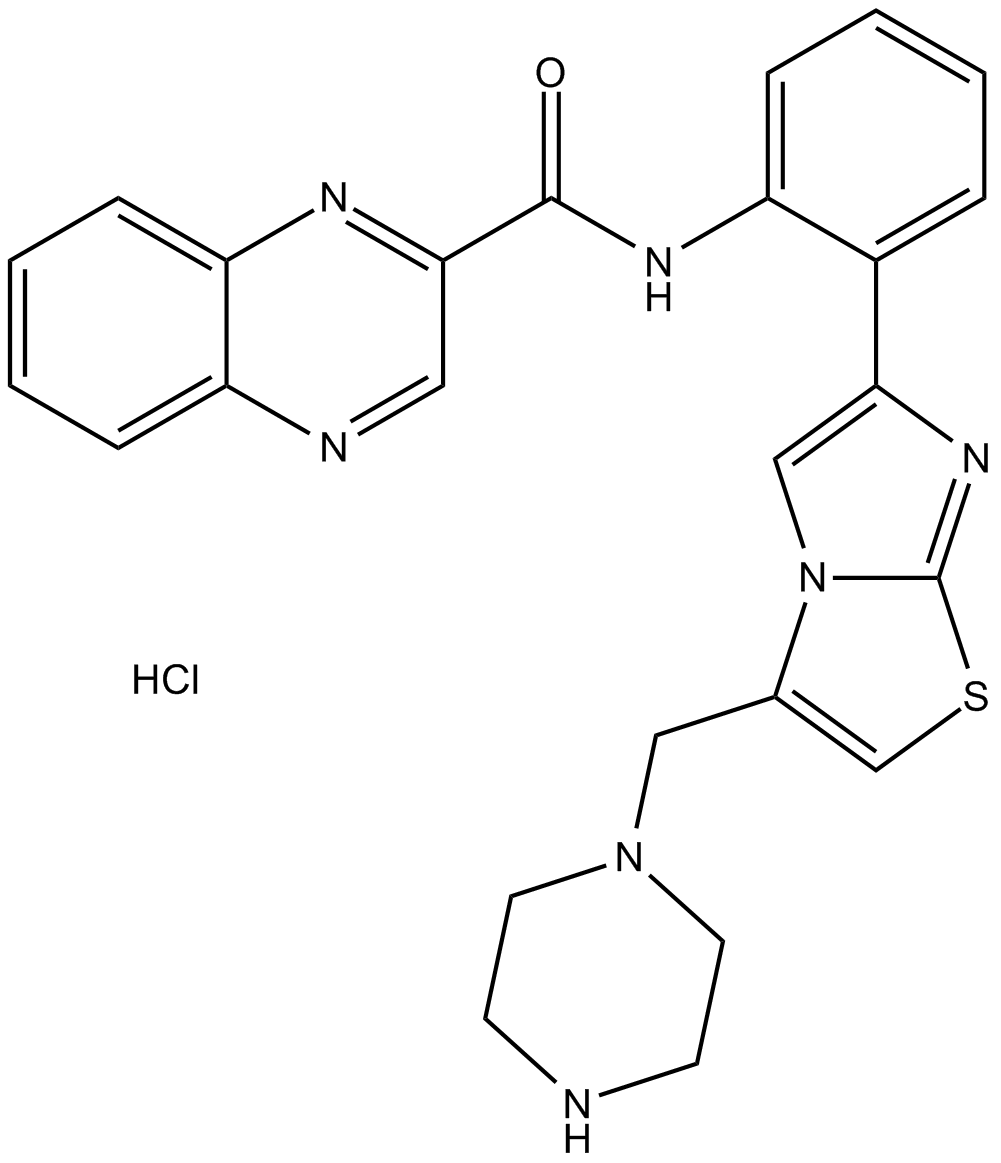 | Chemical Name | N-[2-[3-(piperazin-1-ylmethyl)imidazo[2,1-b][1,3]thiazol-6-yl]phenyl]quinoxaline-2-carboxamide;hydrochloride |