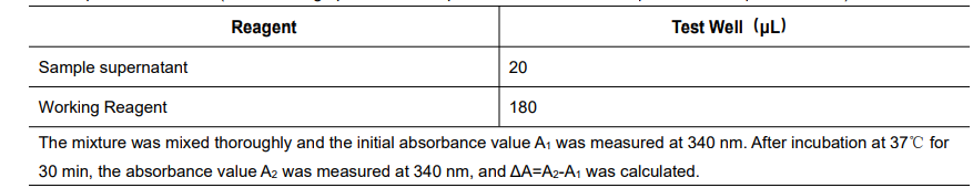 1.將酶標儀或紫外線分光光度計預熱30分鐘以上,調整波長至340nm。用去離子水將紫外線分光光度計歸零。