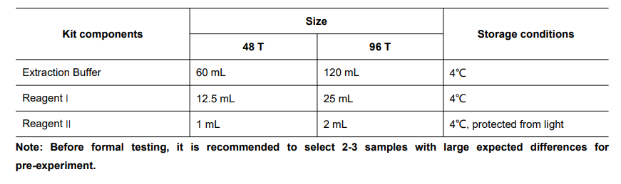 | Kit components | •Extraction Buffer •Reagent I •Reagent Ⅱ |