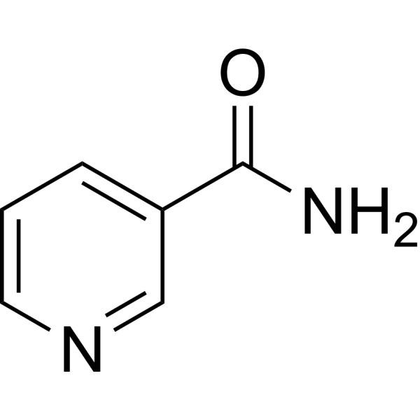 菸鹼醯胺(Nicotinamide)是維生素 B3 或菸鹼酸的一種形式。鹽酸菸鹼醯胺抑制 SIRT2 活性(IC50:2 μM)。菸鹼醯胺(Nicotinamide) 還能抑制 SIRT1。菸鹼醯胺(Nicotinamide) 可增加細胞 NAD+、ATP、ROS 水平。菸鹼醯胺(Nicotinamide) 可抑制腫瘤生長並提高存活率。菸鹼醯胺(Nicotinamide) 還具有抗B型肝炎病毒活性。