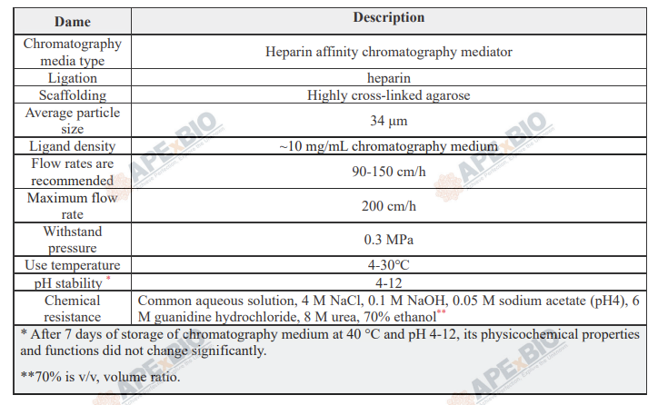 Heparin affinity chromatography preloaded column with high performance, resistance to organic solvents and chemical stability.