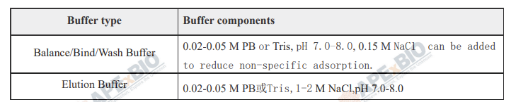 (5) Regeneration: Rinse the column with buffer containing high salt such as 2 M NaCl.